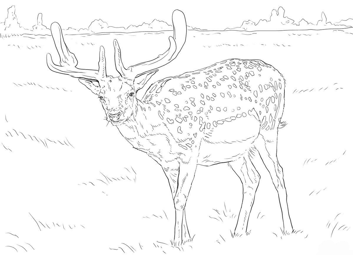 ![Пятнистый олень раскраска]()