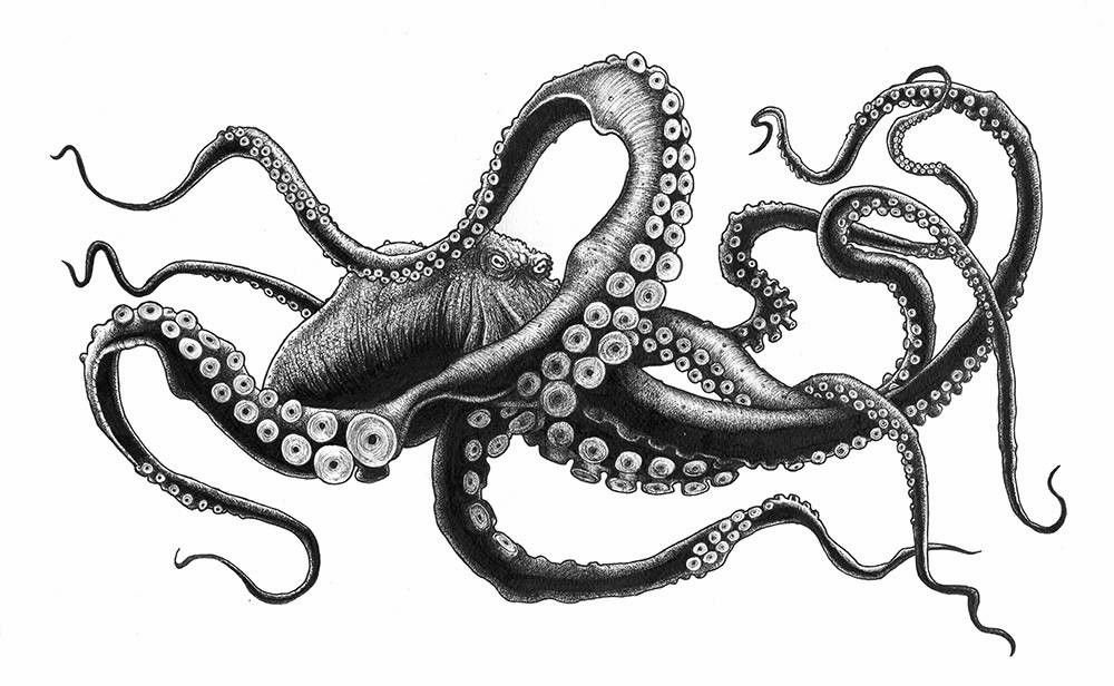 ![Осьминог чб]()