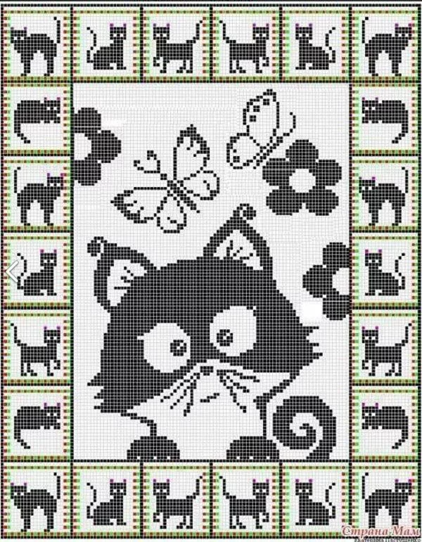 Филейное вязание крючком схемы кошки