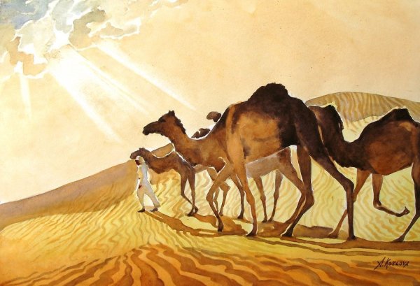 ![Верблюд Караван пустыня в картинах художников в картинах художников]()