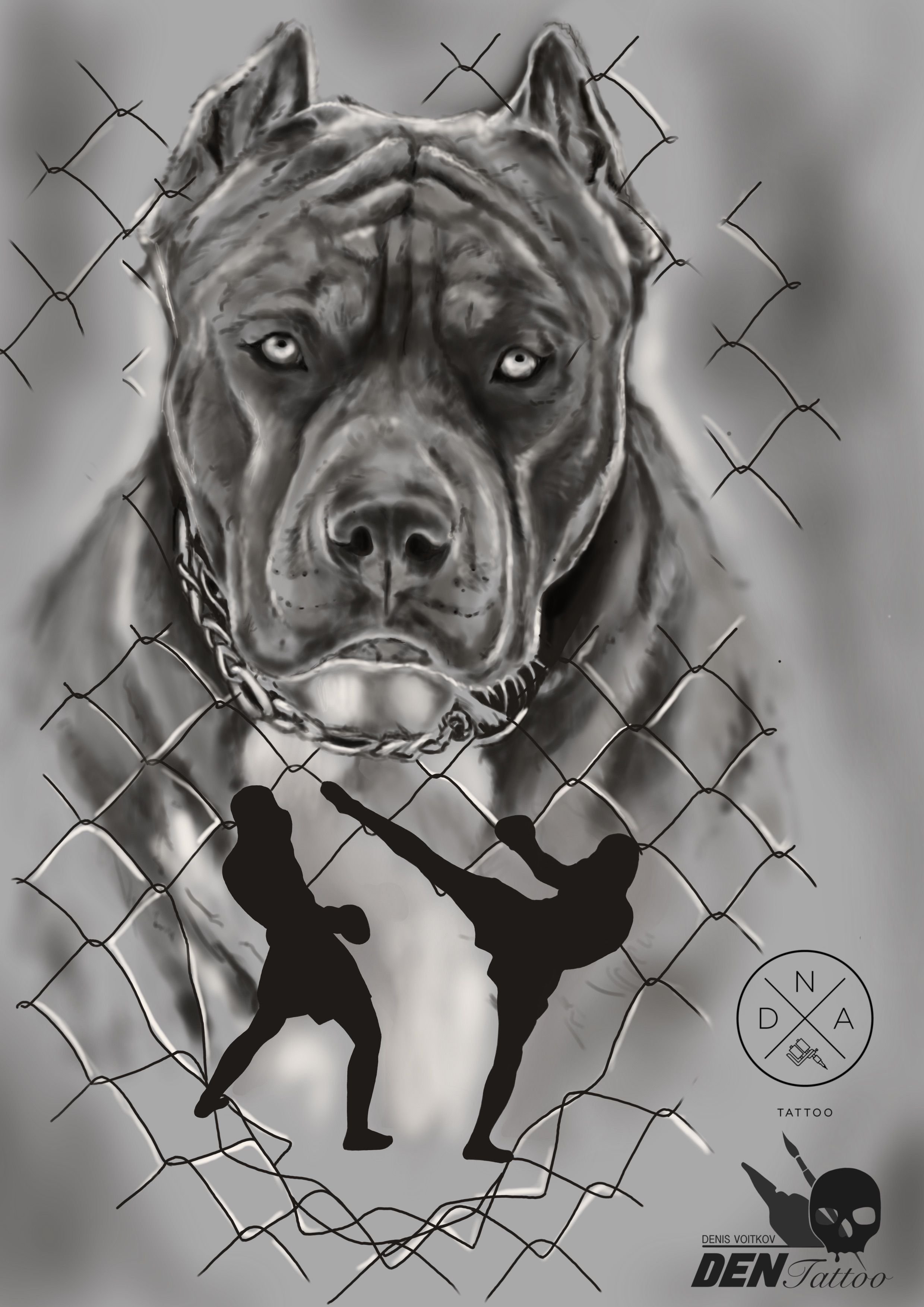 ![Тату собаки Кане Корсо]()