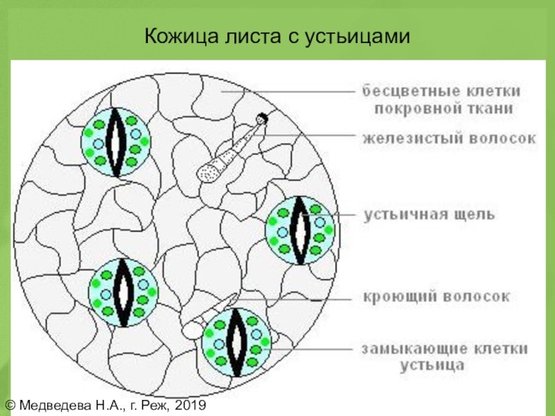 ![Строение кожицы листа и устьица]()