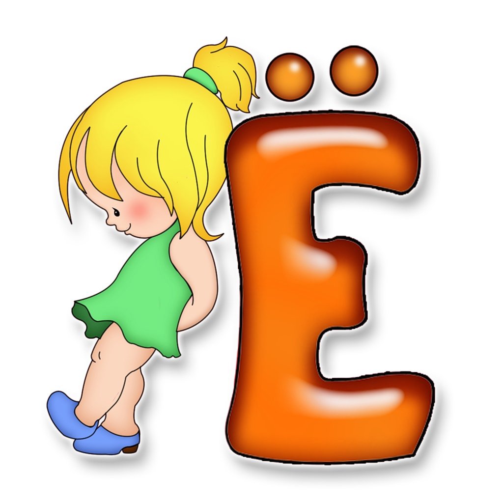 ![Буква е мультяшная с ребенком]()