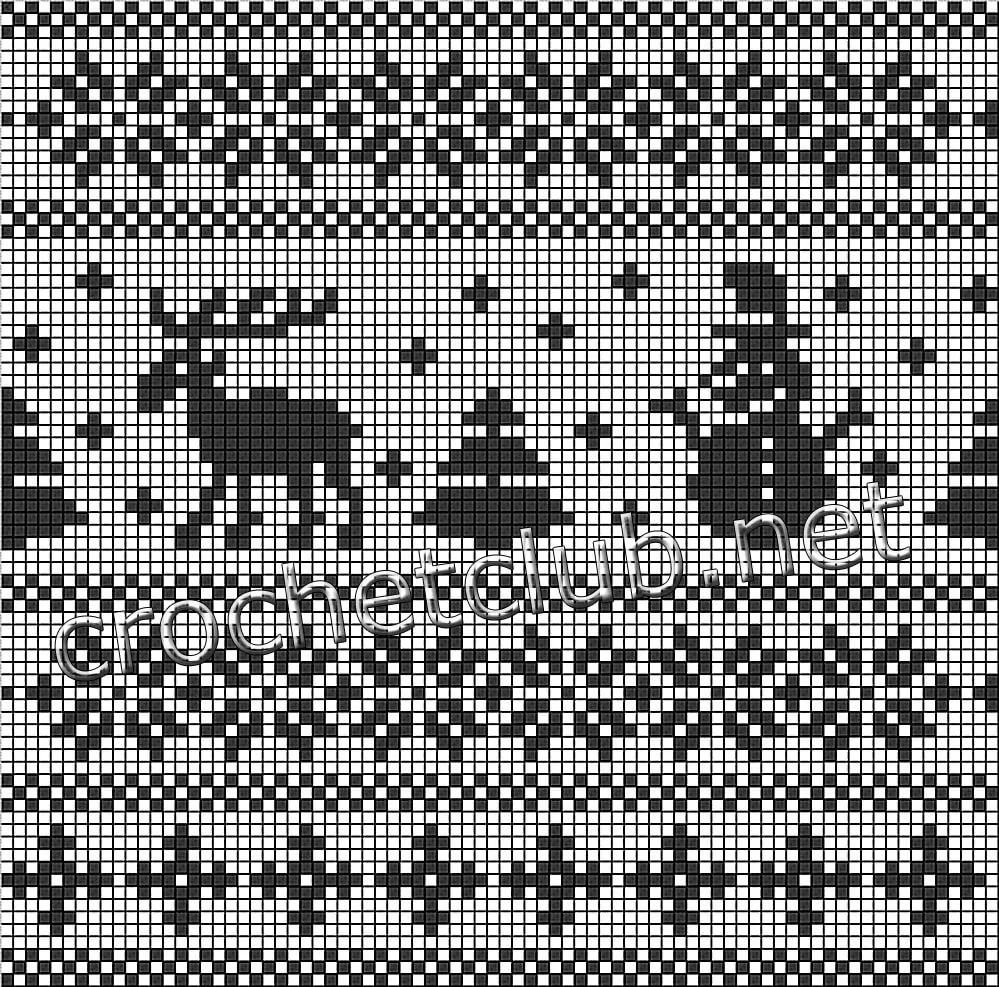 ![Схемы жаккардовых узоров с оленями]()