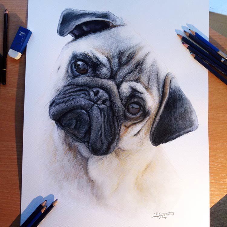 Мопс цветными карандашами