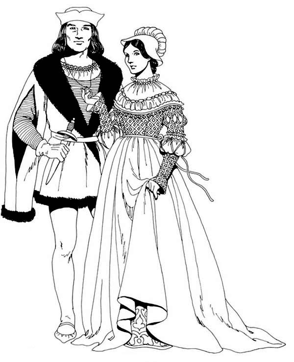 Костюм средневековья раскраска