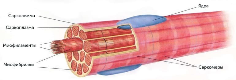 ![Схема поперечно полосатого мышечного волокна]()