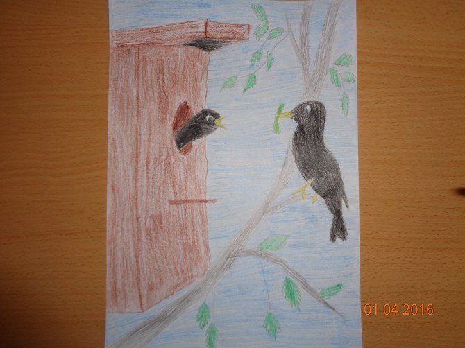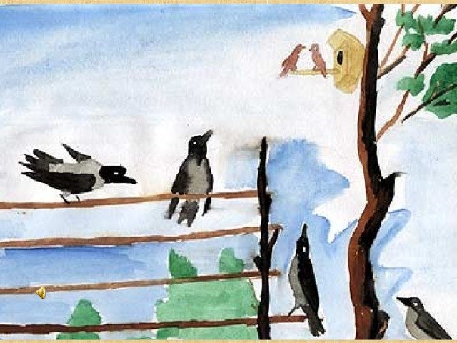 ![Рисование иллюстрации к песне Скворушка прощается]()