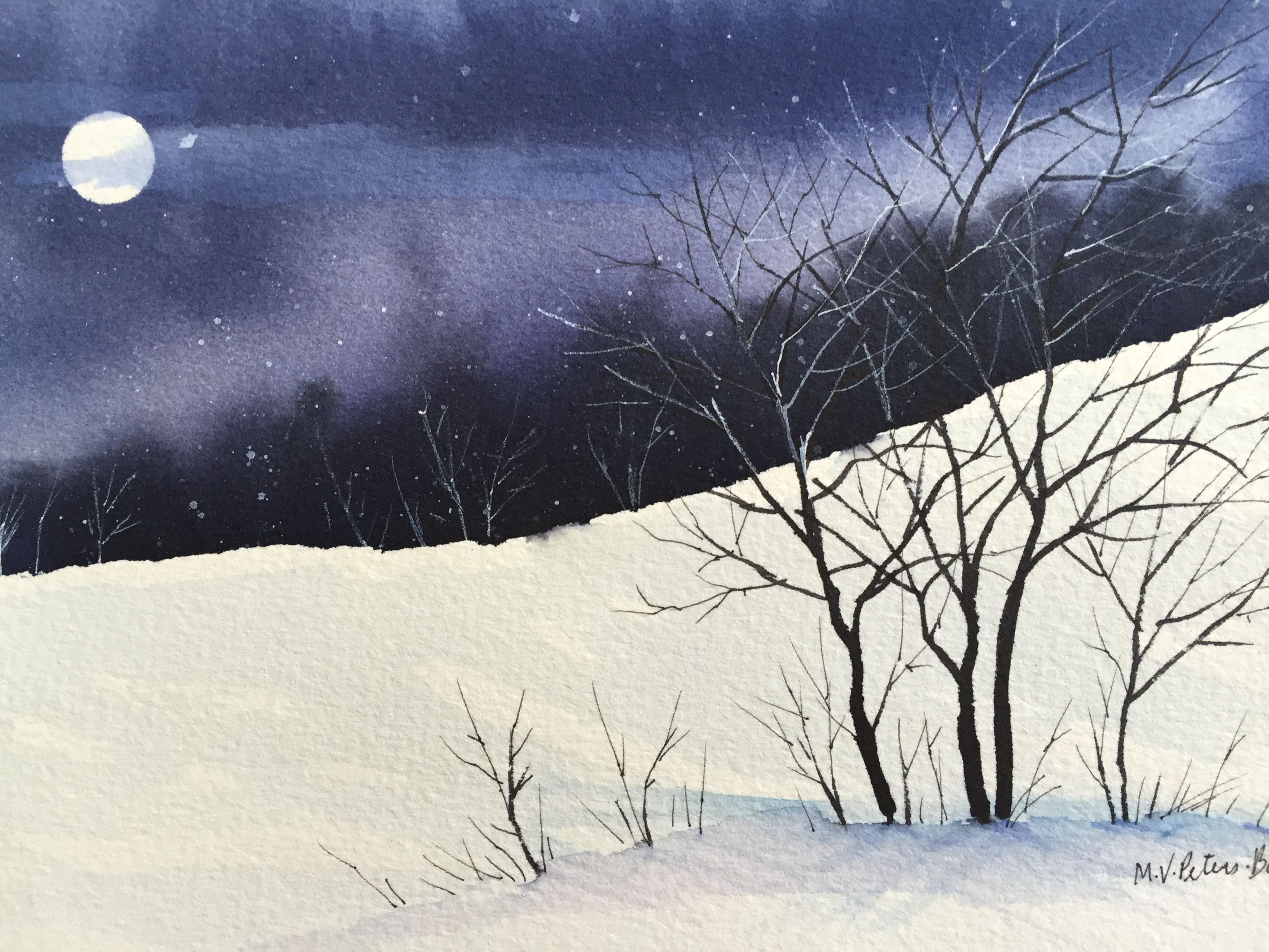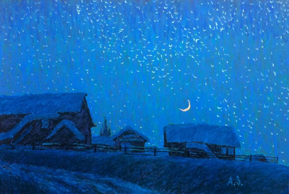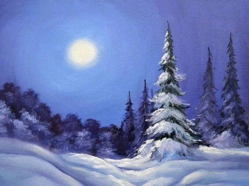 Рисунок "Зимняя ночь" представляет собой картины природы во время зимней ночи. В этом рисунке можно увидеть магическую атмосферу зимнего вечера, где все вокруг погружено в тишину и покой. Основными элементами рисунка являются снежные пейзажи, кристально чистое небо, звезды и луна, которые создают особую атмосферу загадочности и красоты. Глубокий холод, ощущаемый визуально, передается благодаря изображению заснеженных деревьев, легких сугробов и ледяных озер. В целом, рисунок "Зимняя ночь" воплощает в себе чарующую и умиротворяющую красоту зимней природы, заставляя нас почувствовать ее таинственность и величие.