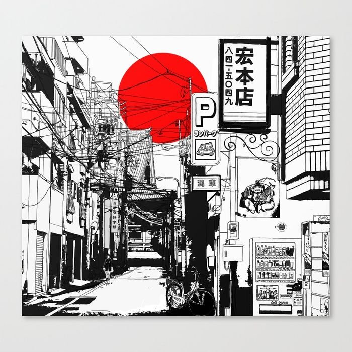 ![Нарисованная улица Японии]()