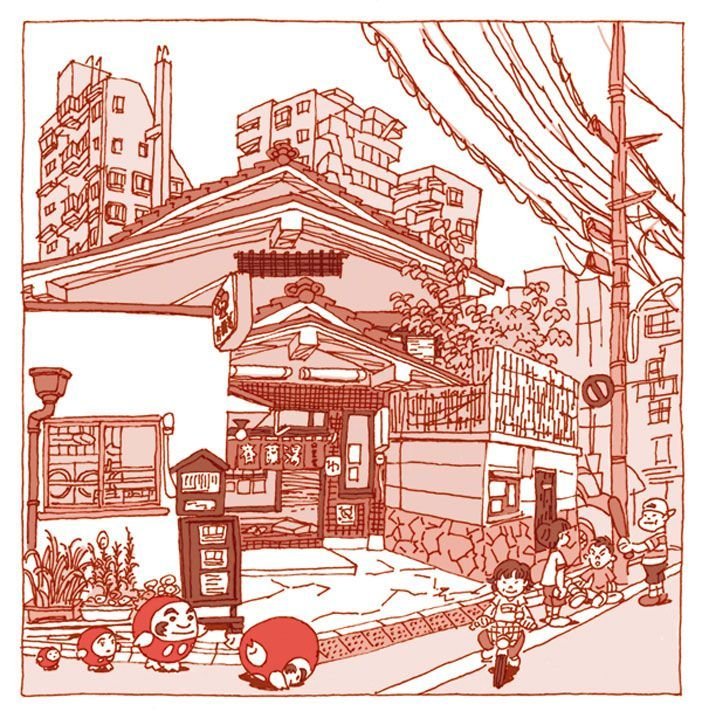 ![Японские улочки зарисовки]()