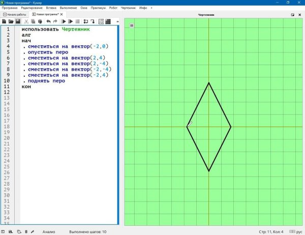 Алгоритм ромба в кумире для чертежника