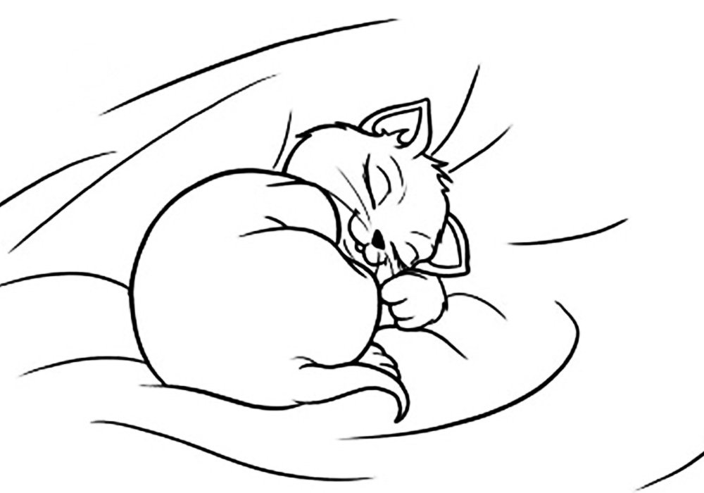 Кошка спит раскраска