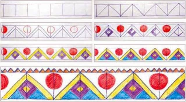 Орнаменты для рисования геометрические в полосе