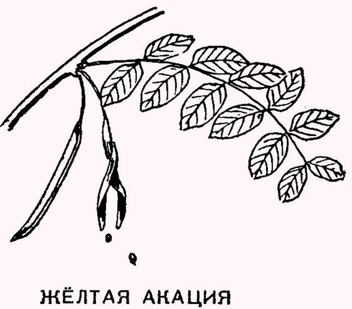 ![Акация желтая Карагана древовидная рисунок]()
