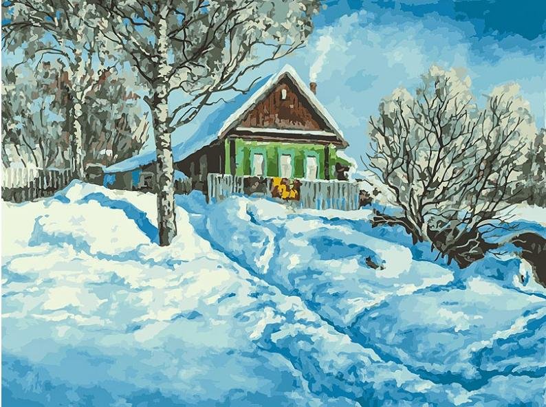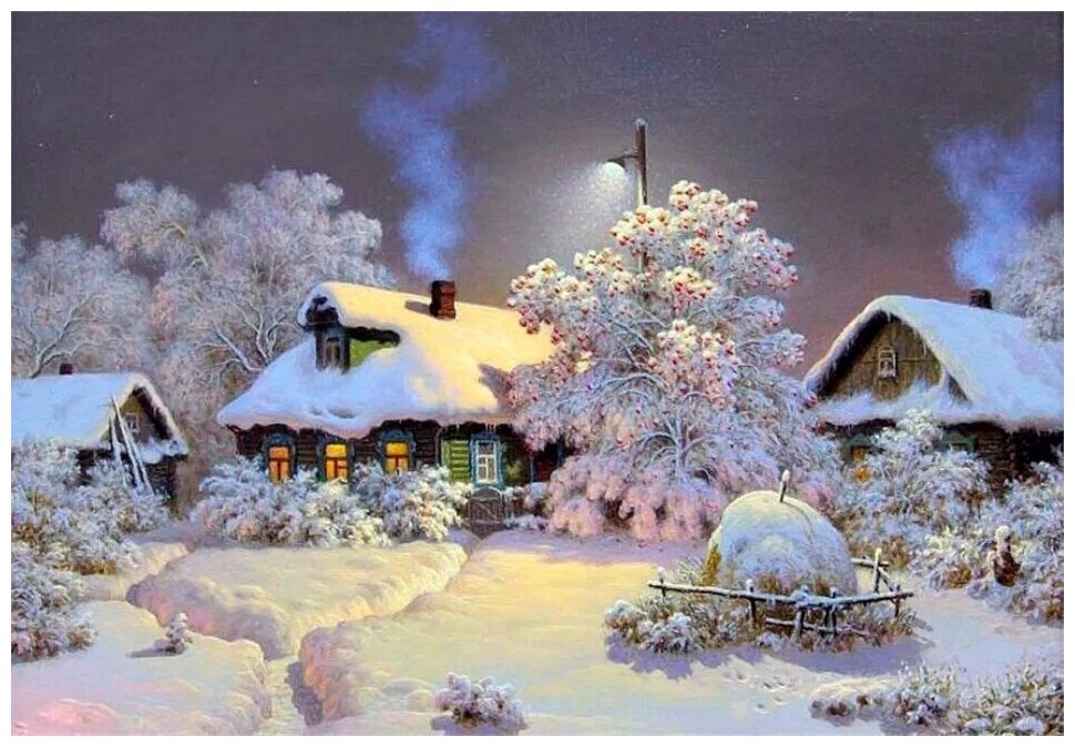 ![Алмазная живопись набор алмазной вышивки зимняя избушка (аж-1420) 60х40 см]()