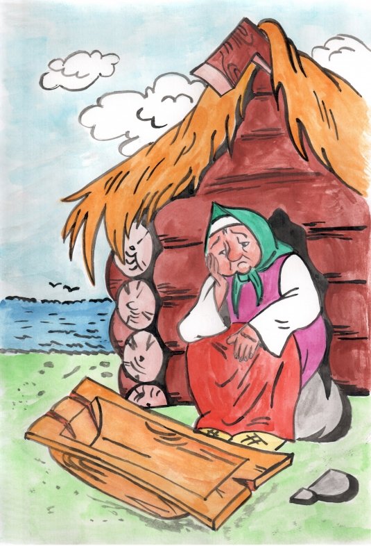 ![Сказка о золотой рыбке старуха у разбитого корыта]()