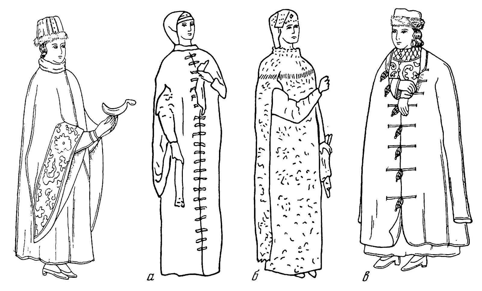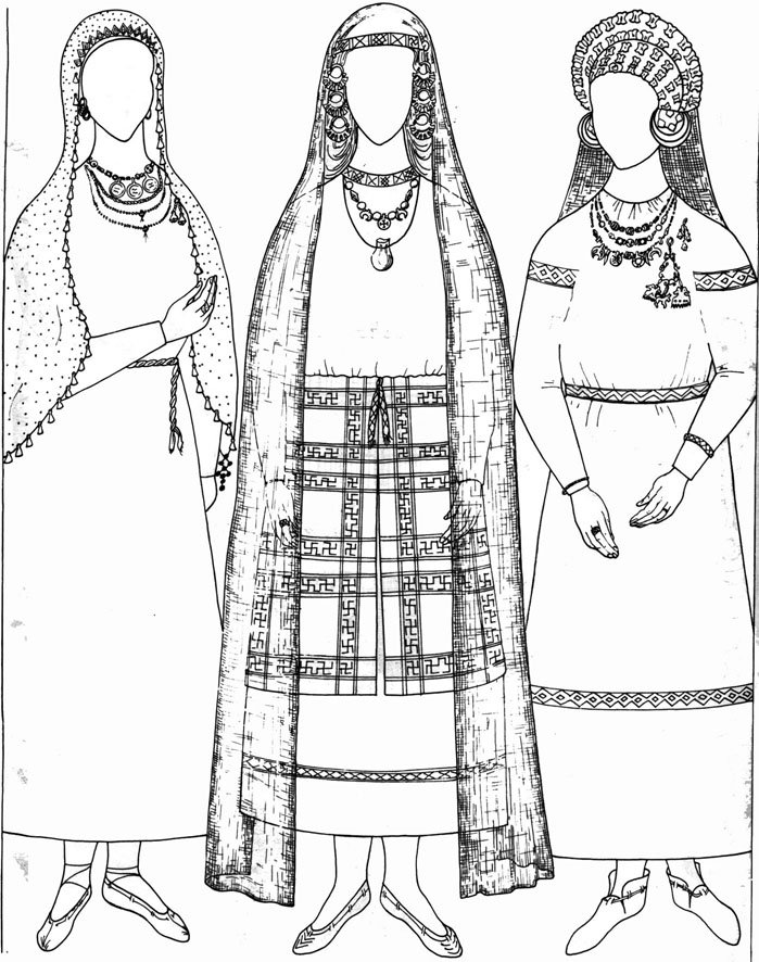 ![Раскраска древнерусского наряда]()