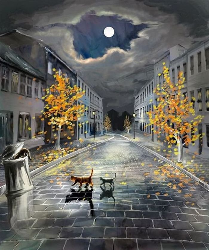 Осень ночь живопись