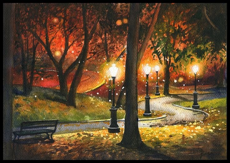 Ночной парк живопись