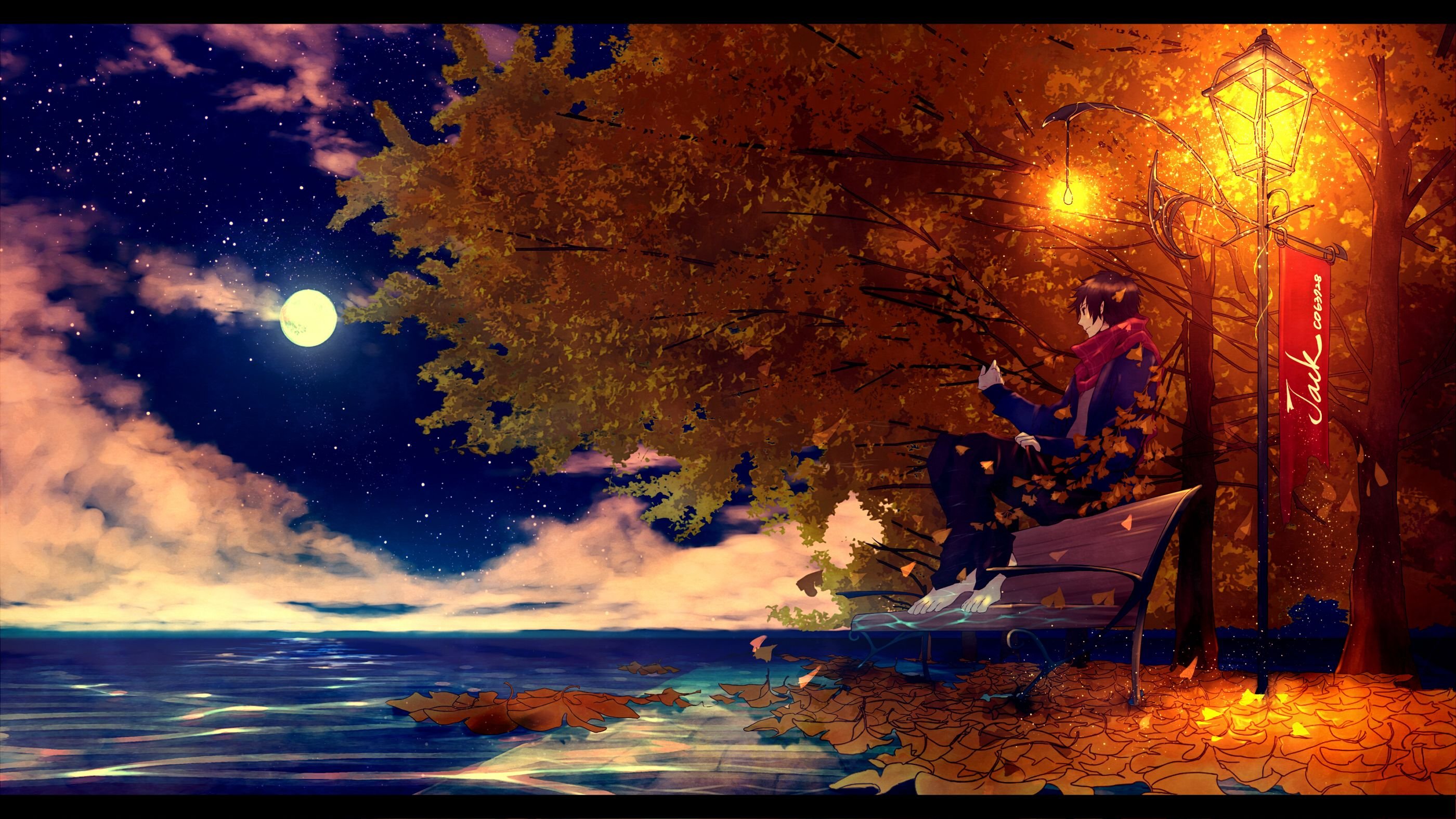 Аниме парень осень