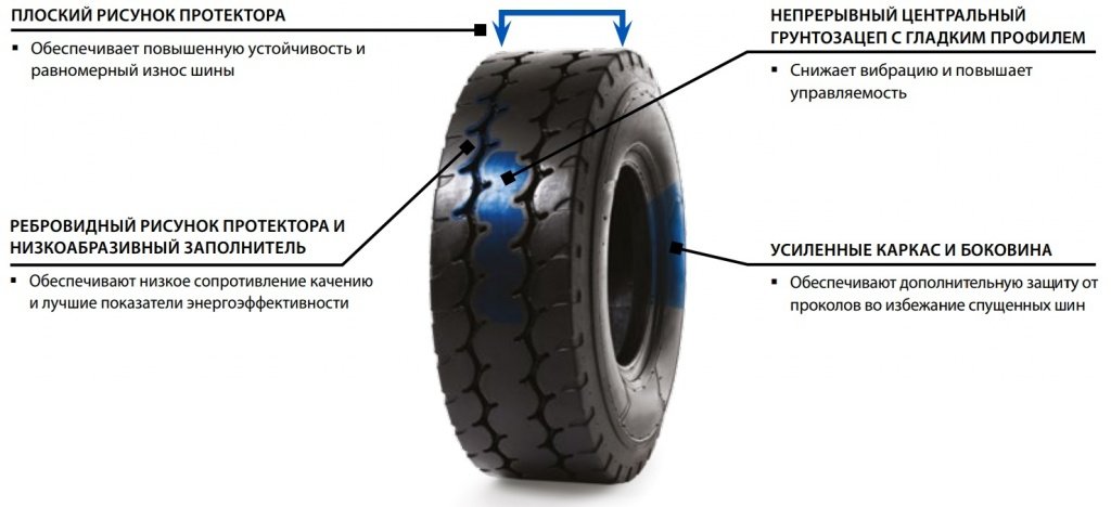 ![Шины с направленным рисунком протектора на КАМАЗ]()