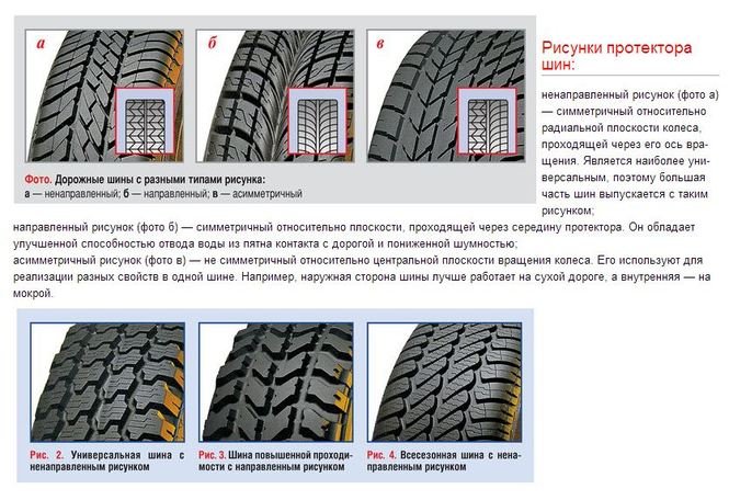 ![Ось легкового автомобиля шины с различными рисунками протектора]()