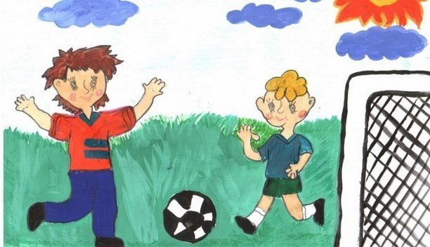 ![Детские рисунки игры в футбол]()