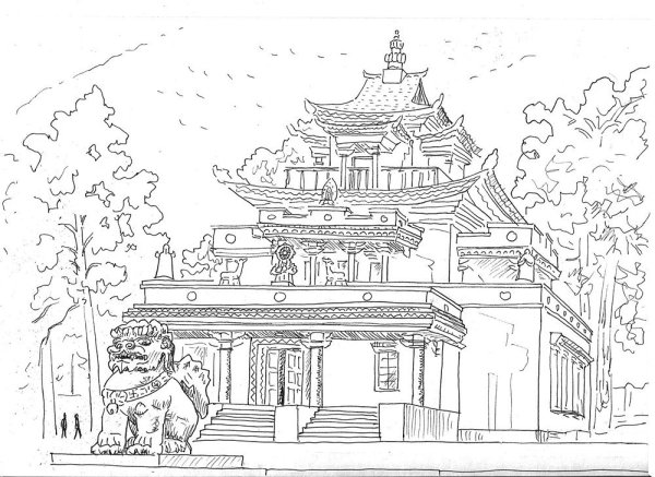 Рисование буддийского храма