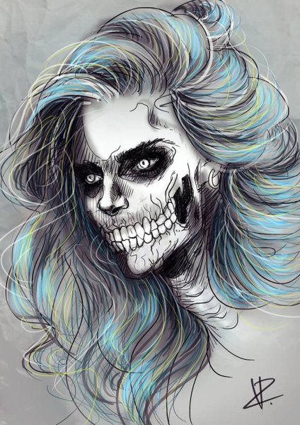 Девушка с черепом арт