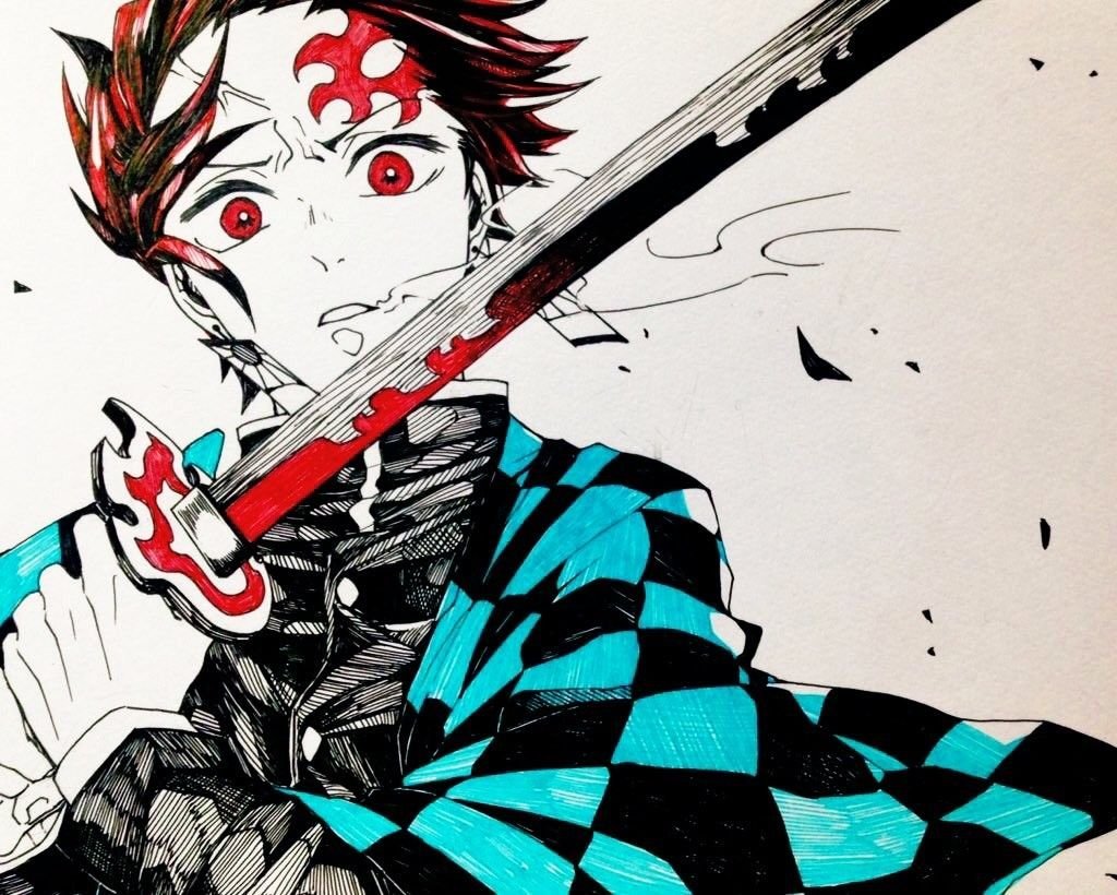 ![Тандзиро Камадо маркерами]()