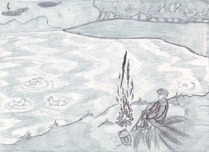 Нарисовать иллюстрацию к эпизоду Васюткино озеро