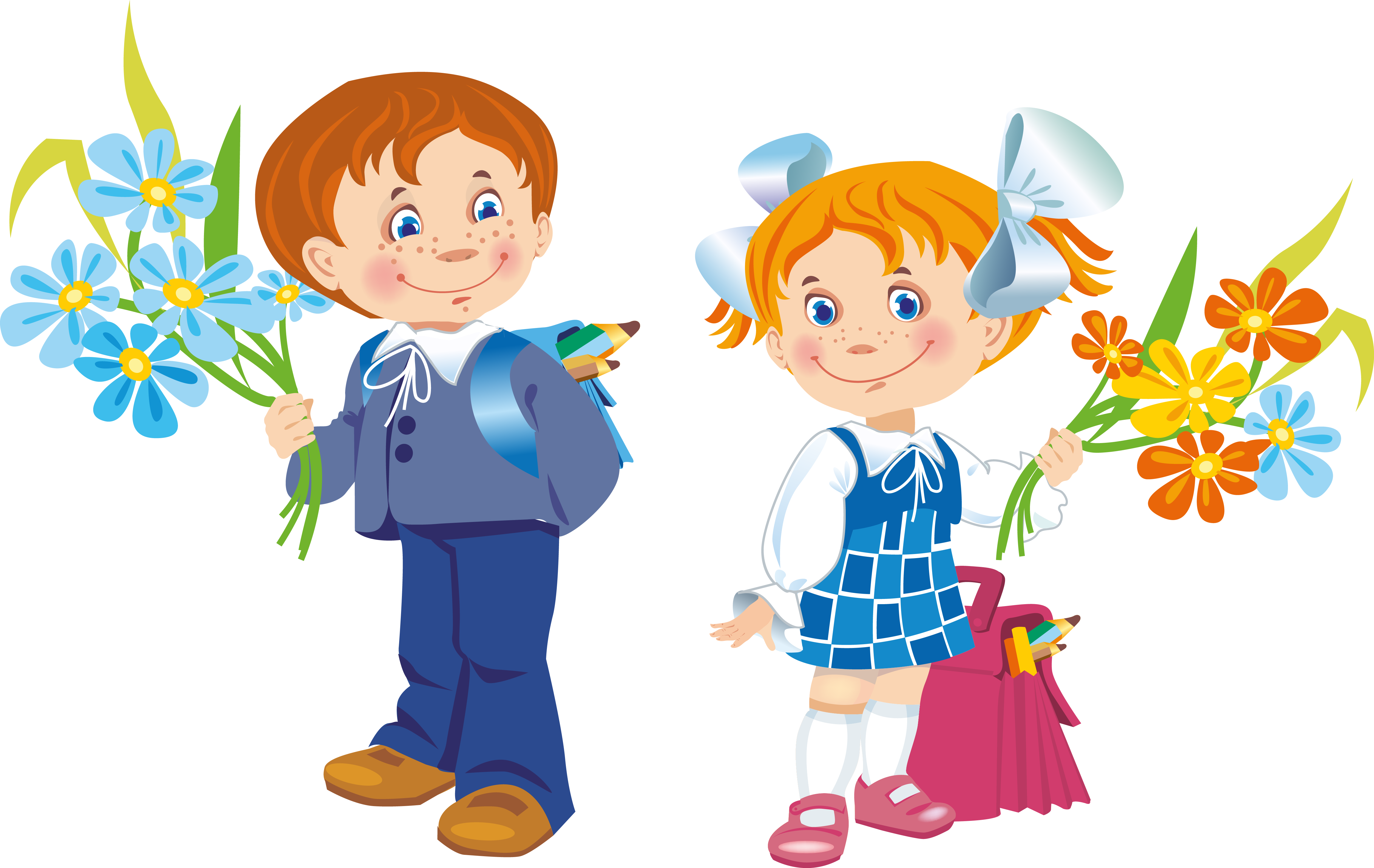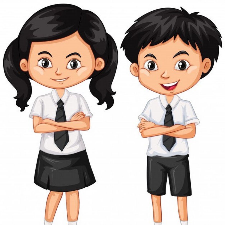 ![Мультяшные мальчик и девочка школьники]()