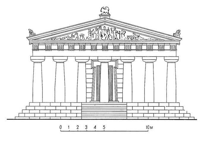 ![Храм Зевса в Олимпии фасад]()