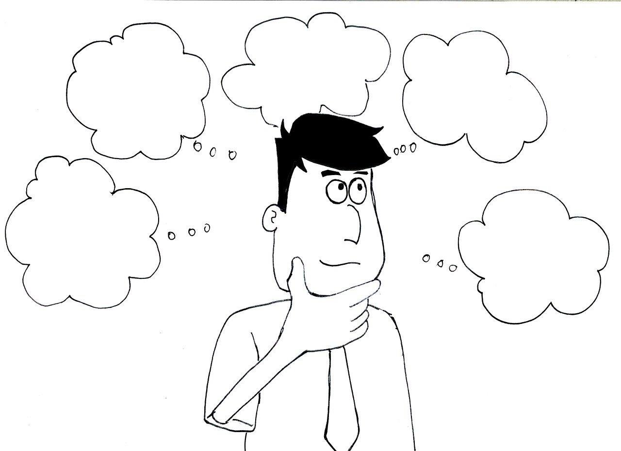 ![Человек думает карикатура]()
