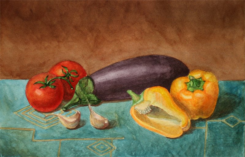 ![Натюрморт с овощами акварель]()
