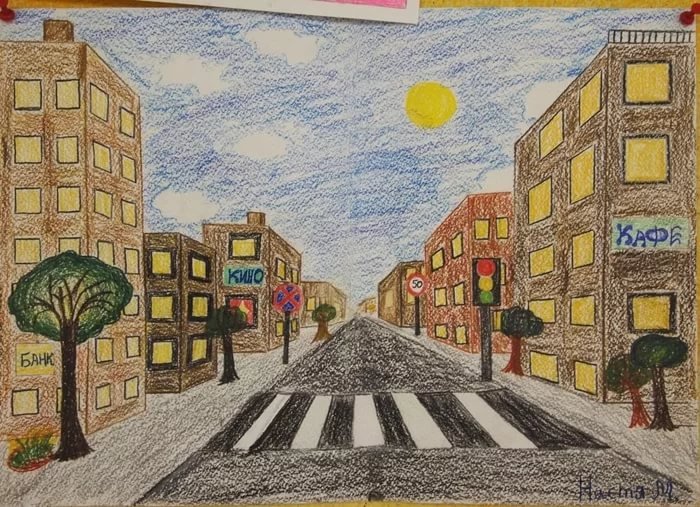 На этом удивительном рисунке оживает городская улица. Каждая деталь воссоздана с невероятной точностью, от зданий с их уникальными фасадами до тротуаров, заполненных людьми, автомобилями и велосипедами. Цвета яркие и насыщенные, добавляя жизни сцене. Рисунок просто захватывает воображение, позволяя вам почувствовать себя частью этого городского пейзажа. Вы можете представить себя проходящим по улице, слышащим шум толпы, видящим витрины магазинов и ощущающим энергию города. Этот рисунок - настоящее произведение искусства, которое мгновенно переносит вас в атмосферу живой и пульсирующей городской жизни.