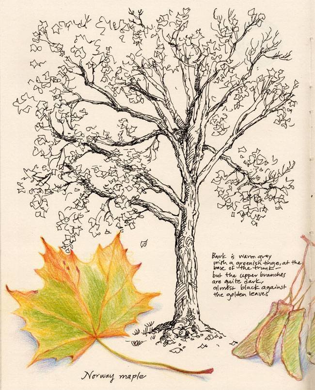 ![Дерево клен рисунок карандашом]()