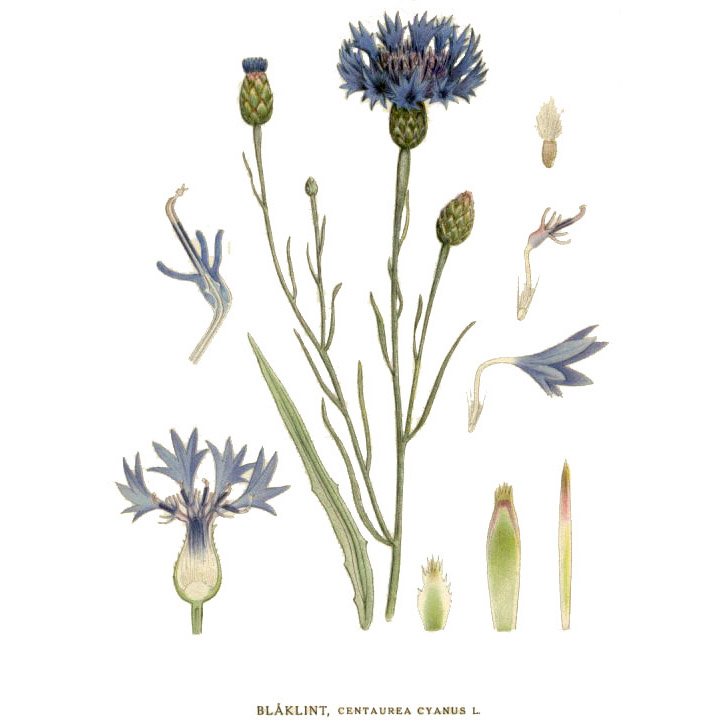 Centaurea cyanus Ботанический рисунок