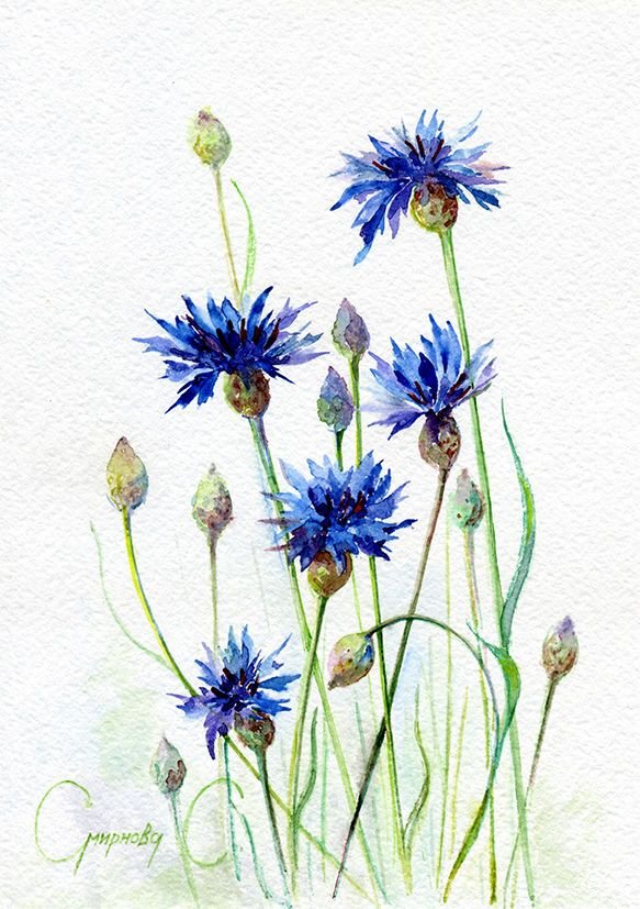 ![Марина Трушникова акварель васильки]()