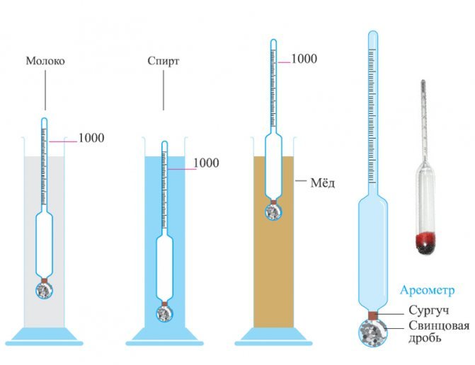 ![Принцип работы ареометра для измерения плотности]()