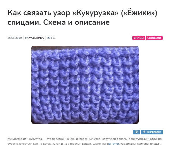 Вязка кукурузка спицами схема