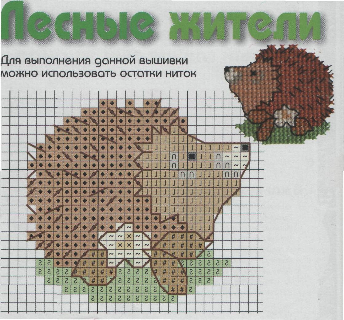 Схема вышивки ежика крестиком