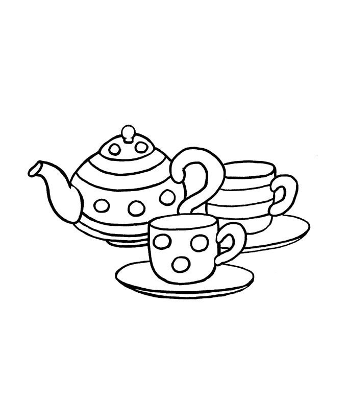 ![Раскраска чайный сервиз для детей]()