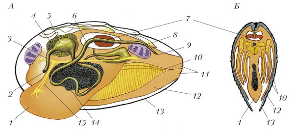 Беззубка моллюск внутреннее строение