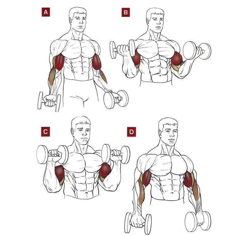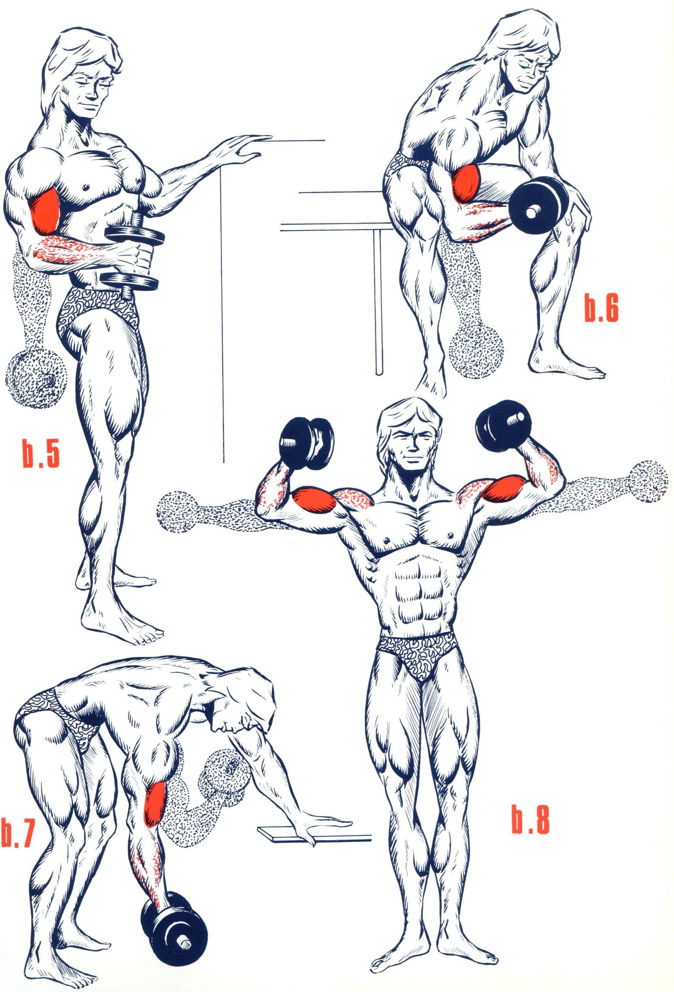 ![Упражнения на дельтовидные мышцы с гантелями]()