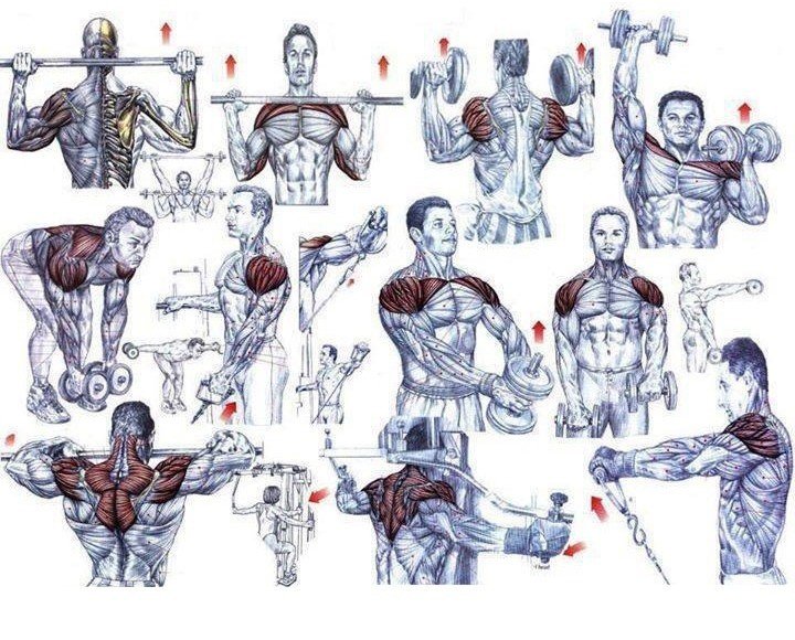 ![Упражнения на плечи в тренажерном зале для мужчин]()