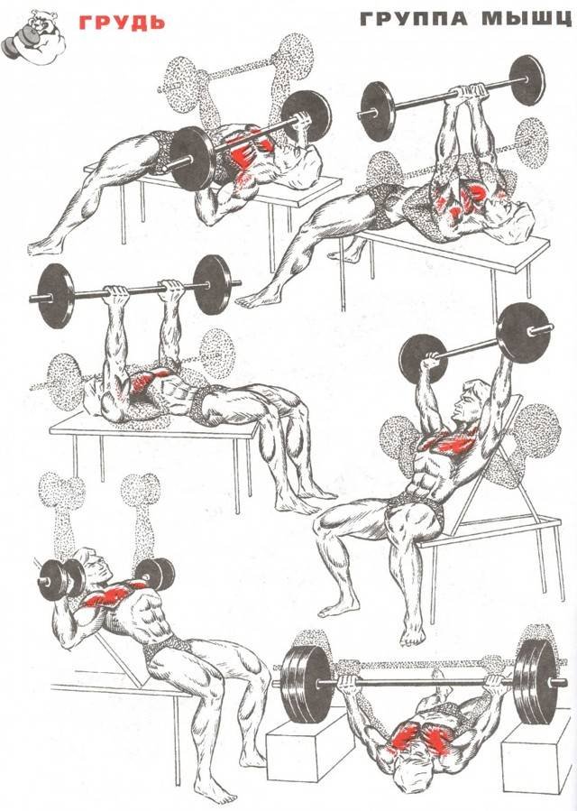 ![Упражнения для тренировки грудных мышц в тренажёрном зале для]()