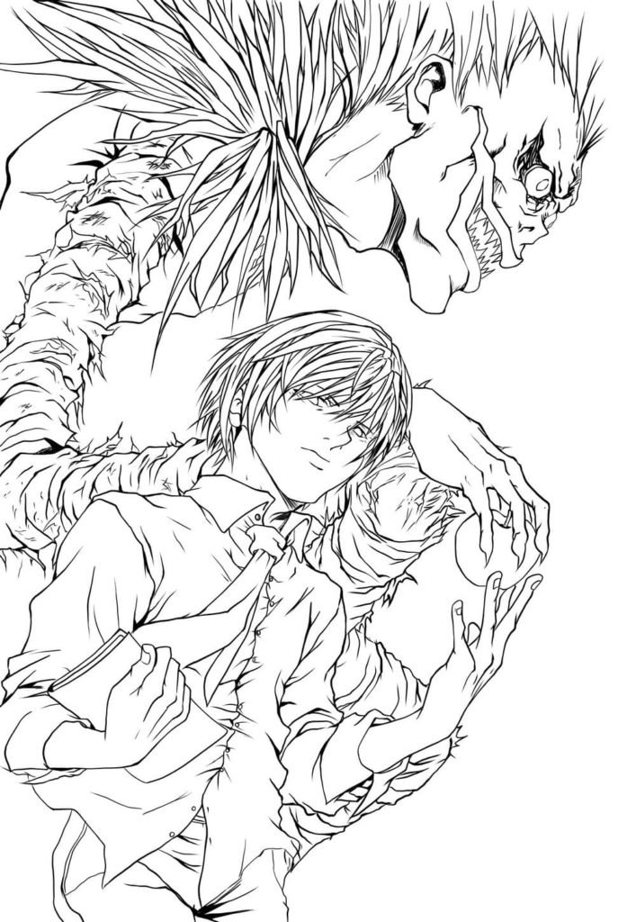 ![Раскраски аниме тетрадь смерти Лайт]()