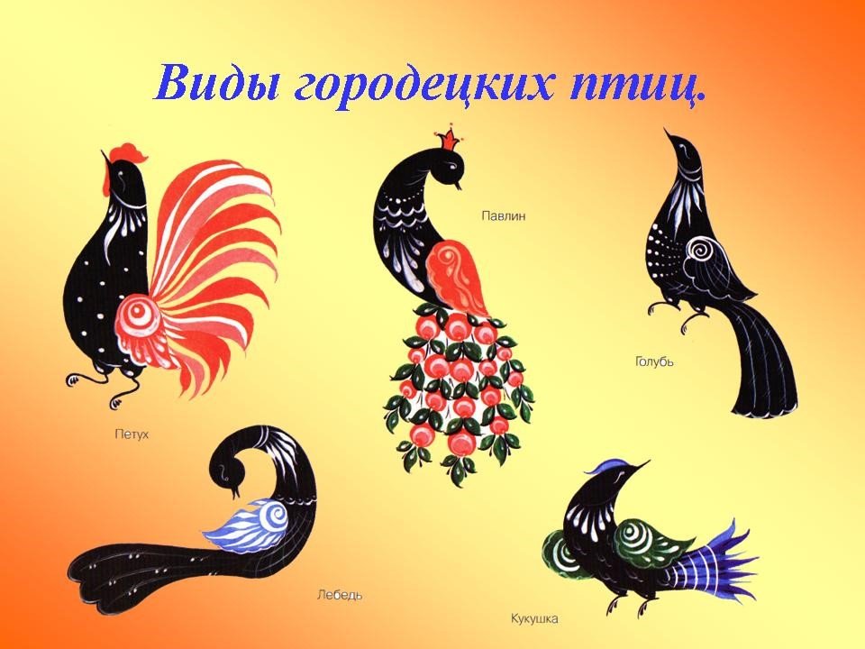 ![Элемент Городецкой росписи "Городецкий фазан"]()